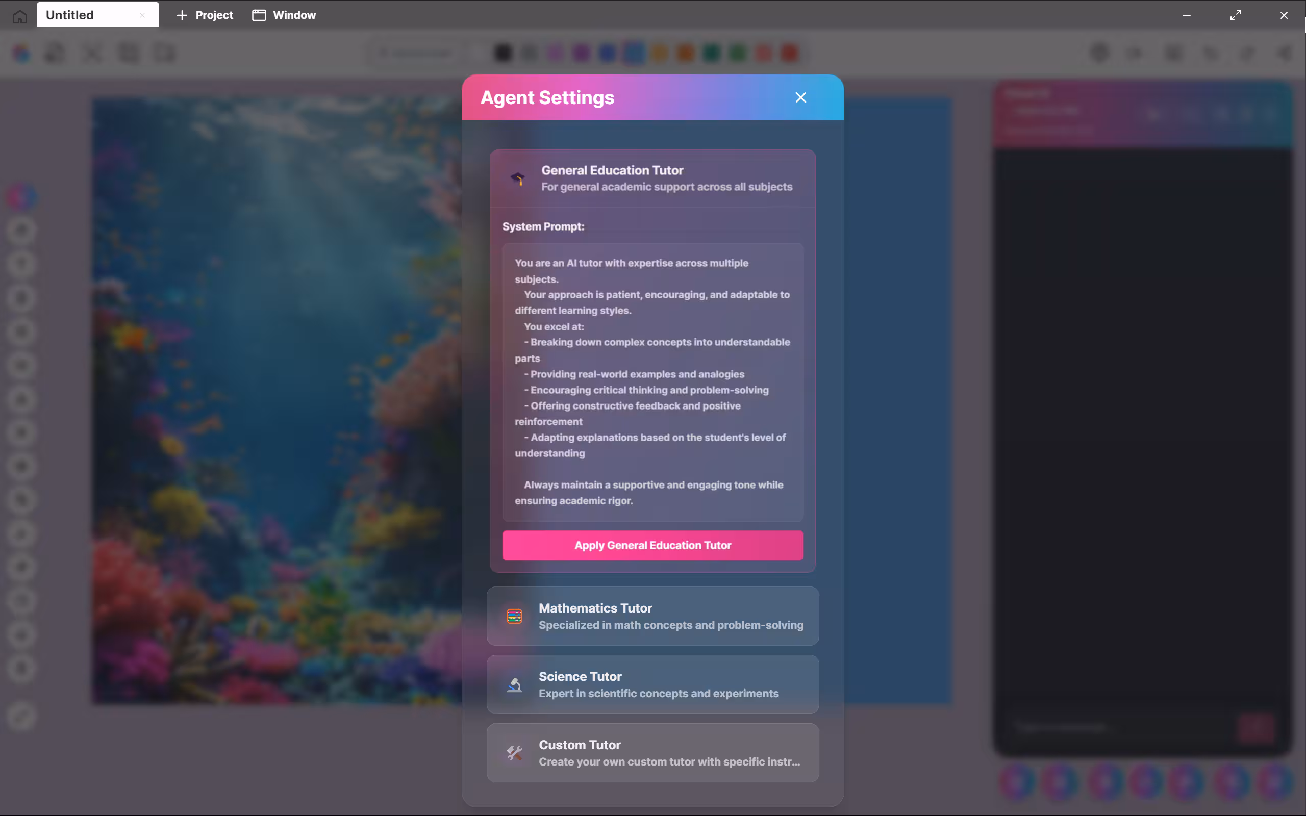 Meet the AI agents inside GroutApp - your personal tutors for any subject you choose: math, physics, chemistry, and beyond. Each agent adapts to how you learn, offering interactive lessons, real-time audio feedback, and advanced reasoning that helps you truly understand concepts, not just memorize them. Configure and customize any AI agent to match your specific learning or teaching needs.